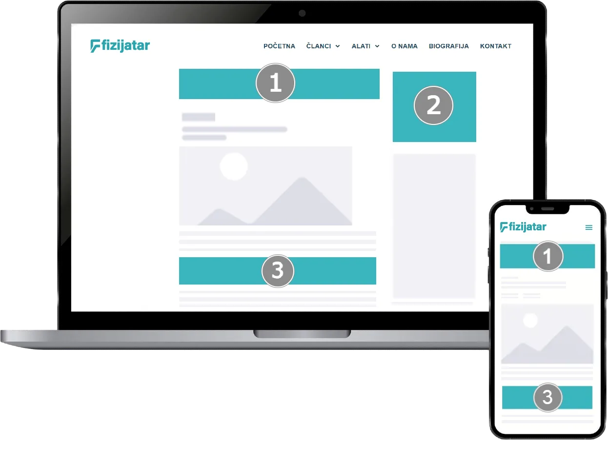 Oglasi se mogu pozicionirati na različitim mjestima: na vrhu stranice (header), u sidebaru ili unutar članka (in-content), čime se postiže maksimalna vidljivost i relevantnost za čitatelje.